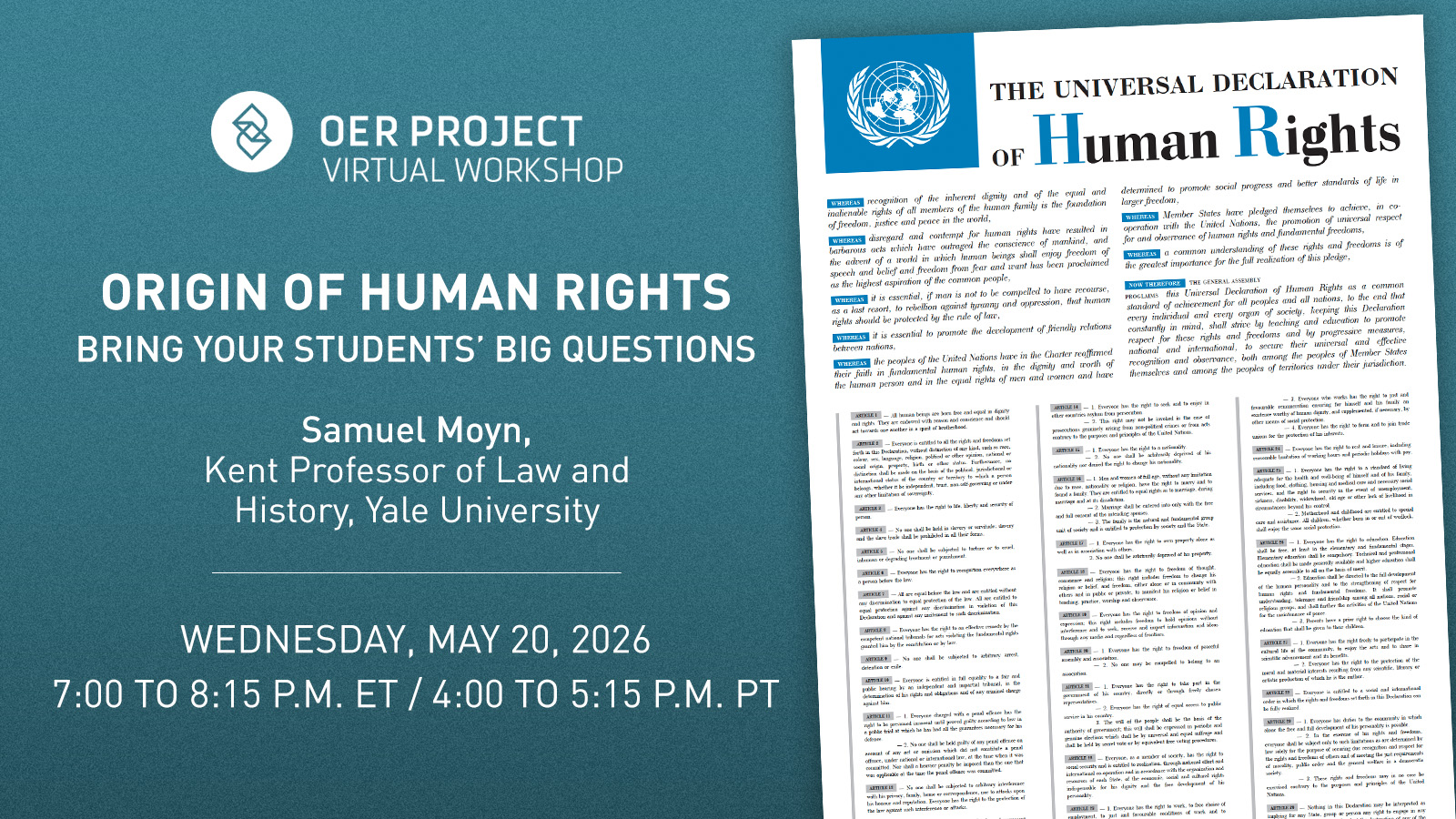 How do we reconcile our beliefs about human rights with the reality of an unequal world? Samuel Moyn will narrate the history of human rights, from its origins in Greek, Jewish, and Christian practices to modern legal rights. He will pose the question, "What's next for human rights?" and share ideas from the field about Human Rights 2.0. Educators will gain insights into the ethical, philosophical, and legal reasoning we can apply to discussions of human rights, and Dr. Moyn will help us to make classroom connections.