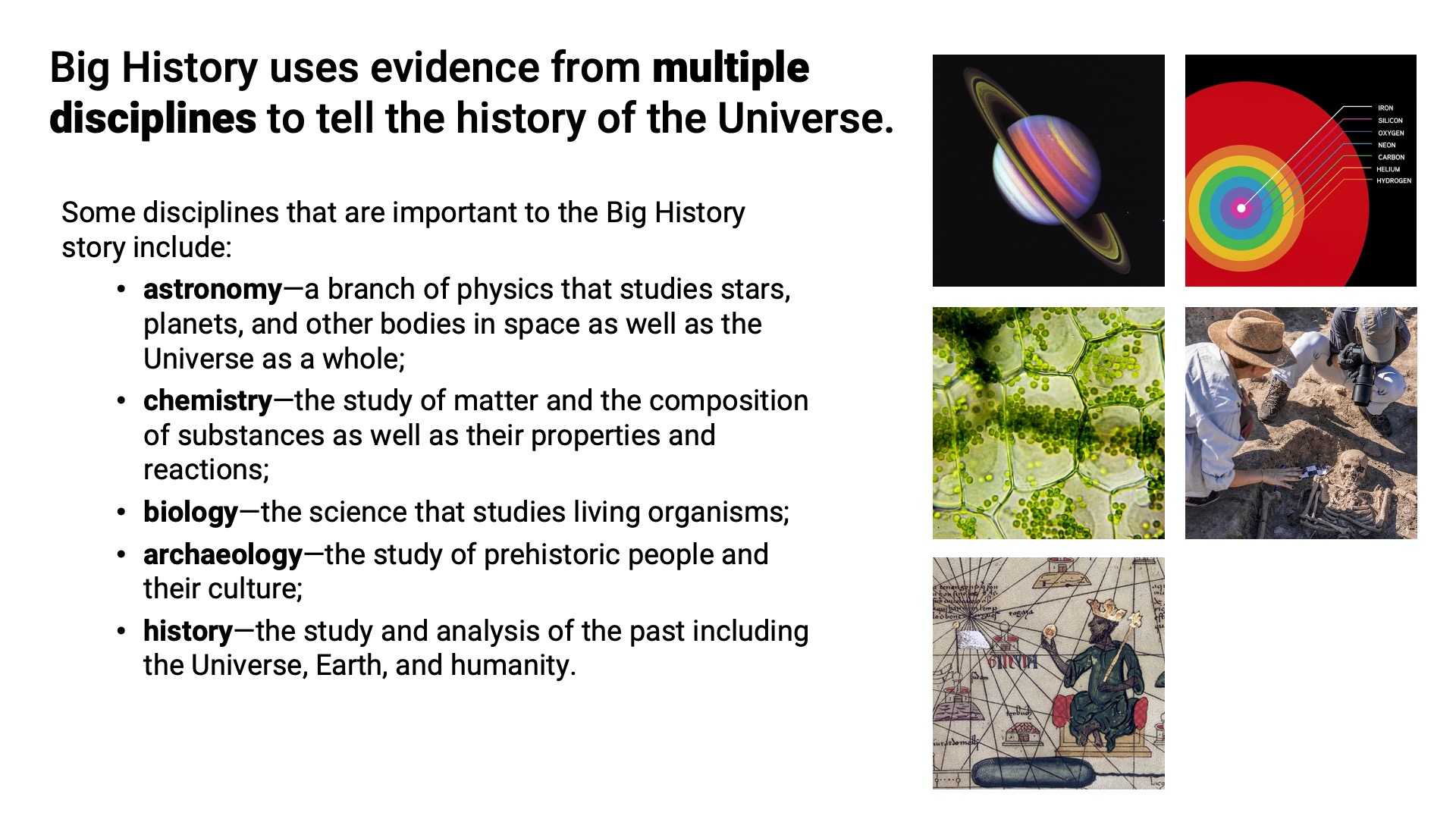 How do multiple disciplines help contribute to the Big History story of the Universe?