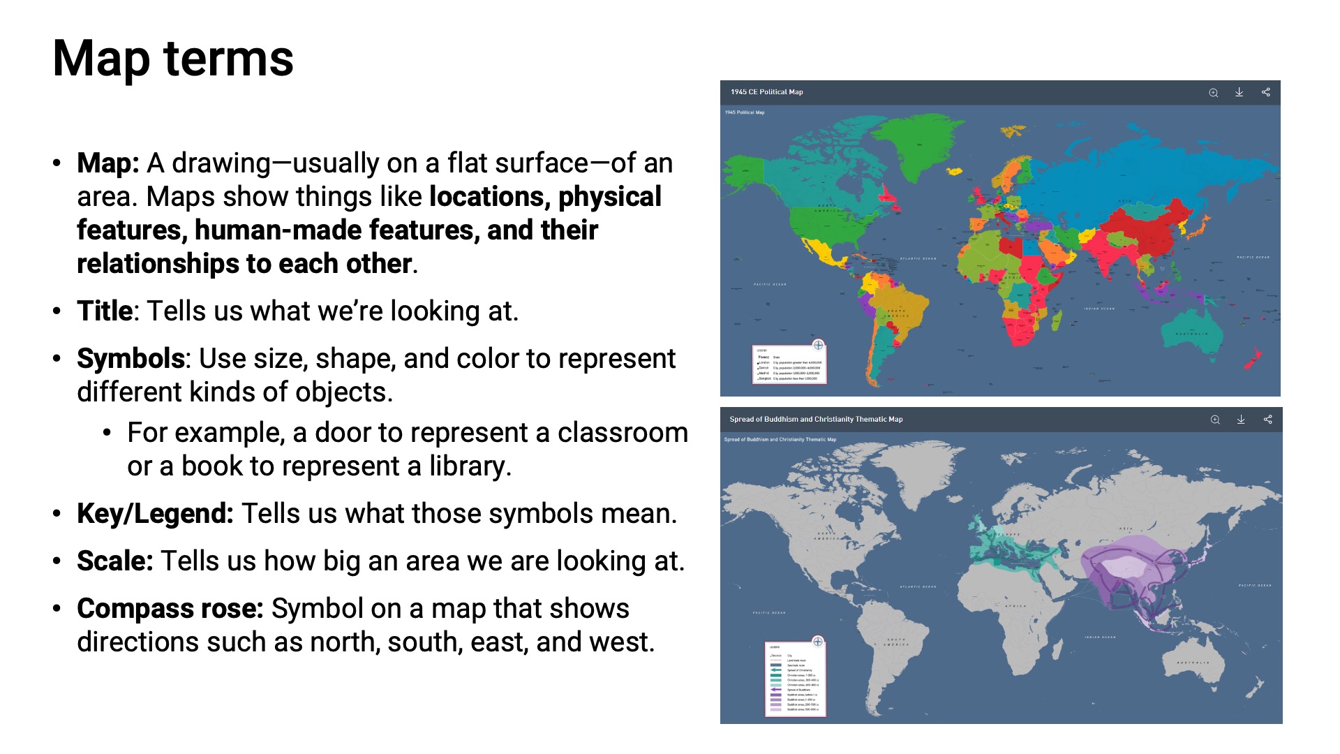 - Create mental maps to organize information about places, environments, and people at different scales.