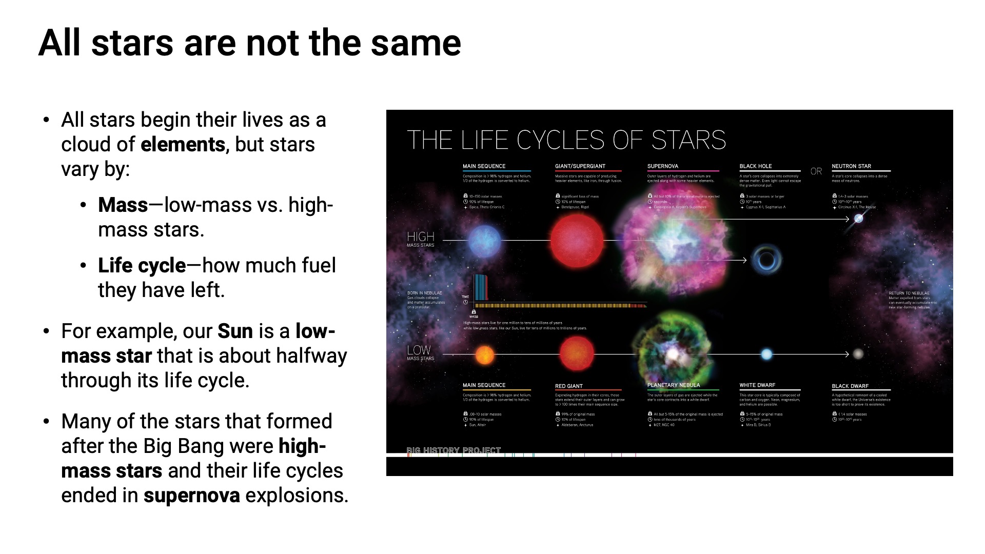 - Apply the historical thinking skill of causation to investigate the birth and death of stars.